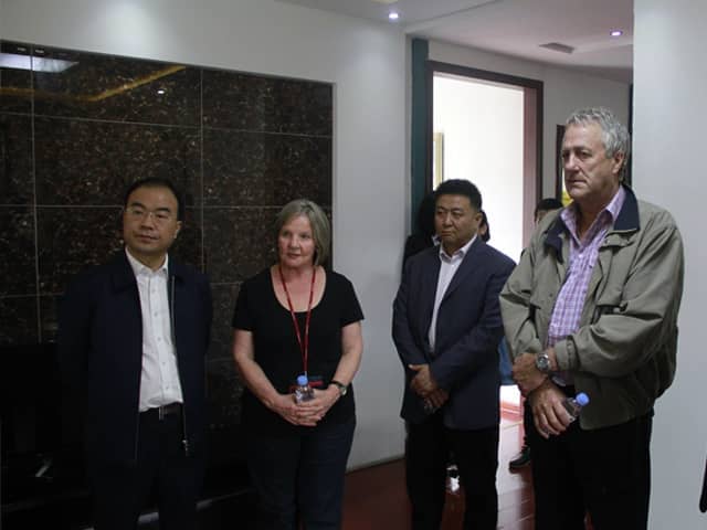 4月26日 澳大利亚外宾、山东大学材料科学与工程学院任教授、兖州区周区长一行莅临优发国际机械参观指导,集团董事长刘洪彬、副总经理、战略项目部部长孙为民、销售经理秦艳慧等全程陪同参观。