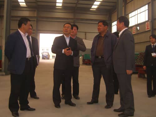 董市长首先参观了公司营销中心,对我公司营销模式和积极开拓国内外市场的经验和做法表示了充分的肯定和赞扬;在公司产品展览室,董市长与陪同领导对公司坚持产学研一体化运作模式给予了认同,并兴致勃勃的观看了公司的系列样品、三维立体生产线演示片和车间生产现场及新产品研发实验室,对公司紧跟国家政策、国家建材行业发展形势和隔墙板国际国内前沿技术等进行了详细的询问。尤其是对公司在建材行业做出的节能贡献表示了充分的肯定。